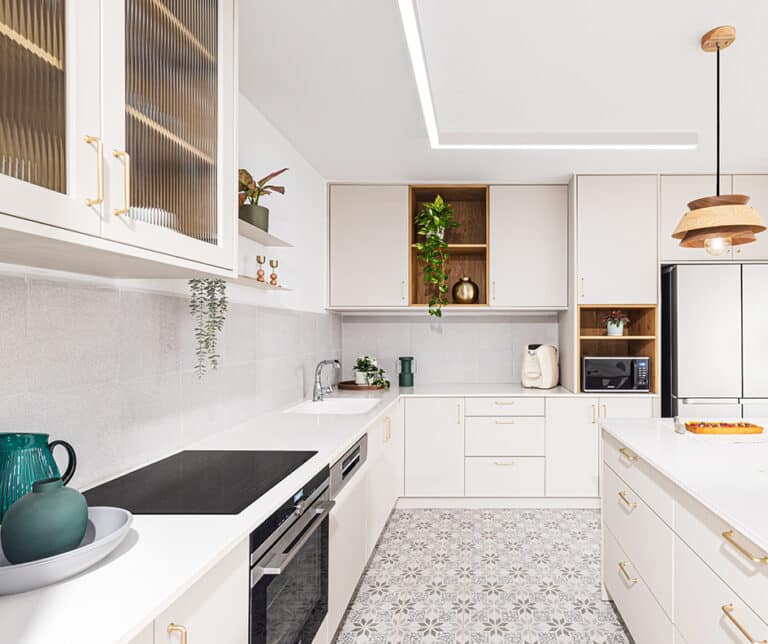 האתגר: דירת קבלן סטנדרטית בעלת חללים פונקציונליים אך חסרי זהות, עם קירות לבנים ורצפת אריחים קרה.