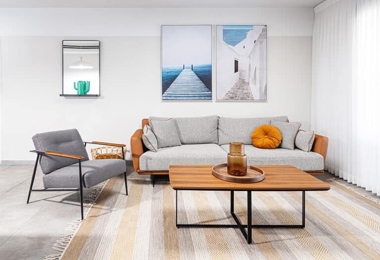 - ריהוט: בחירת רהיטים בעלי טקסטורות רכות וקווים מעוגלים, כמו ספות עור נעימות למגע ושולחנות עץ מלא.