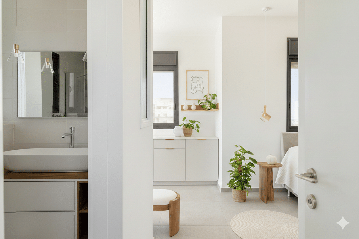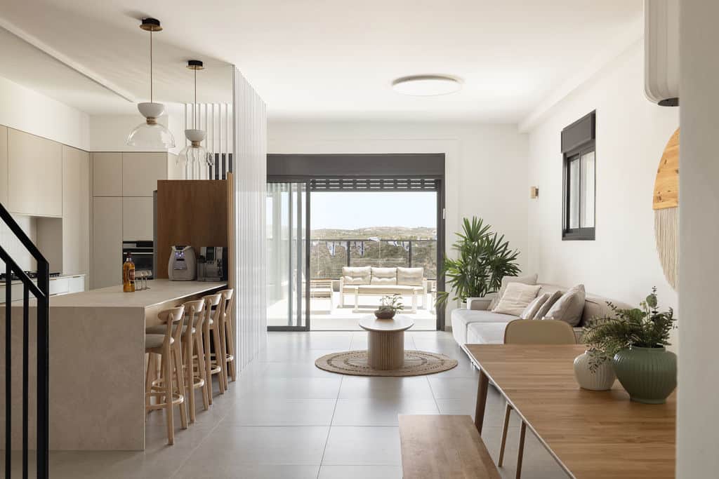 הקו המנחה של הפרויקט היה סגנון סקנדינבי־כפרי: פלטת צבעים רכה ובהירה, הרבה עץ טבעי, טקסטיל חמים ושפע של אור טבעי שנשפך פנימה דרך פתחים גדולים. הדירה שואבת השראה מהפשטות הצפון־אירופית אך משמרת חמימות של בית – כזו שמרגישים כבר מהצעד הראשון פנימה.