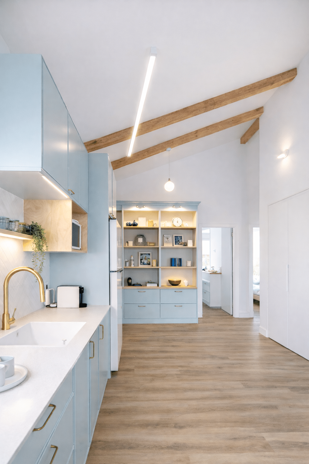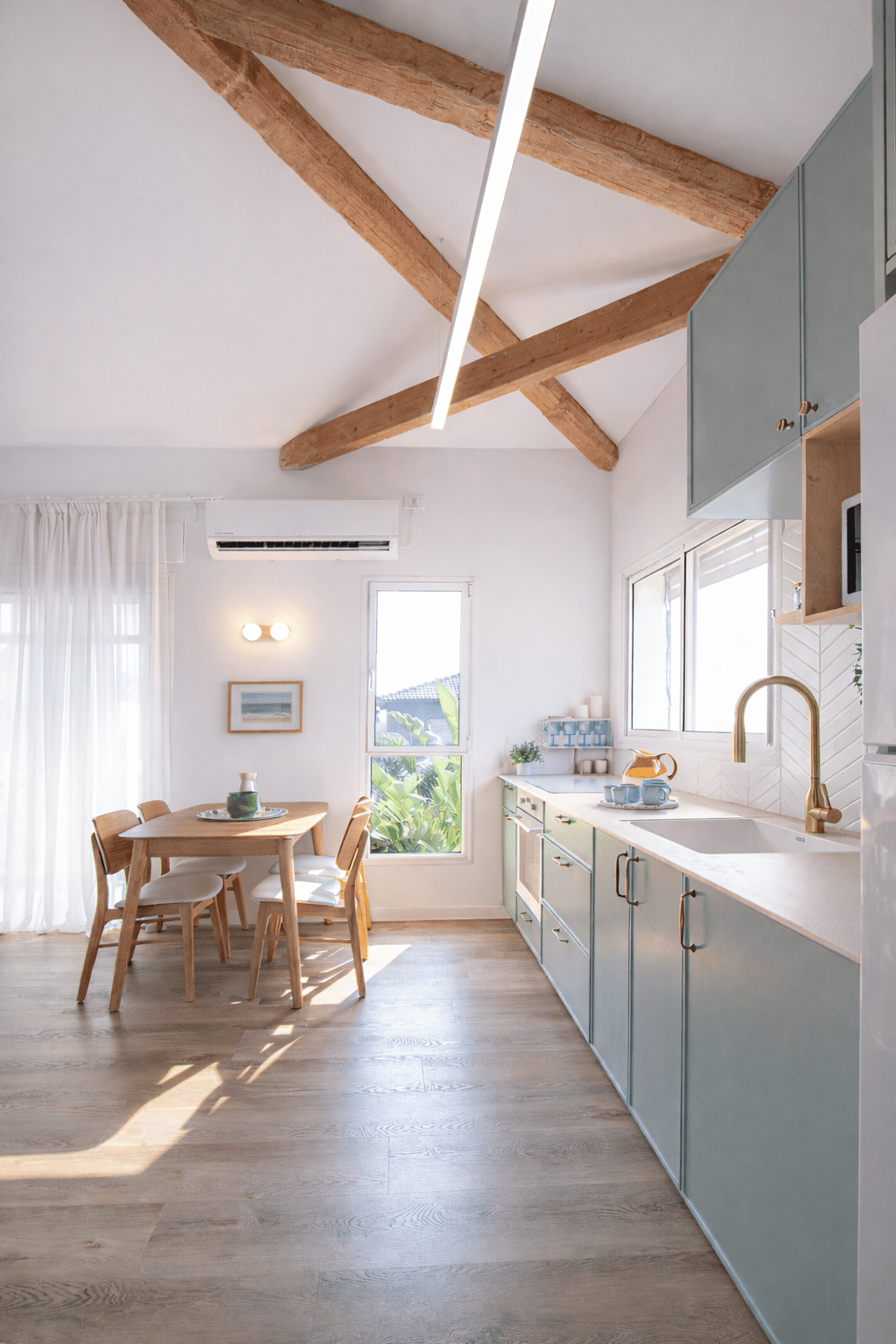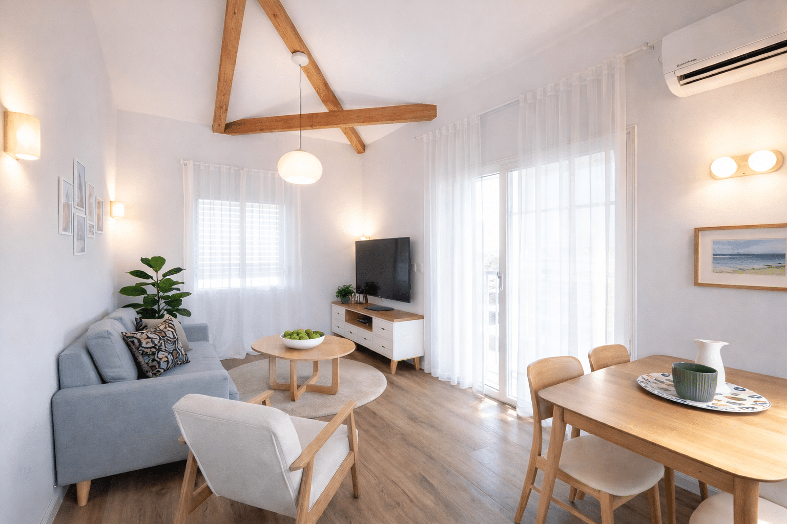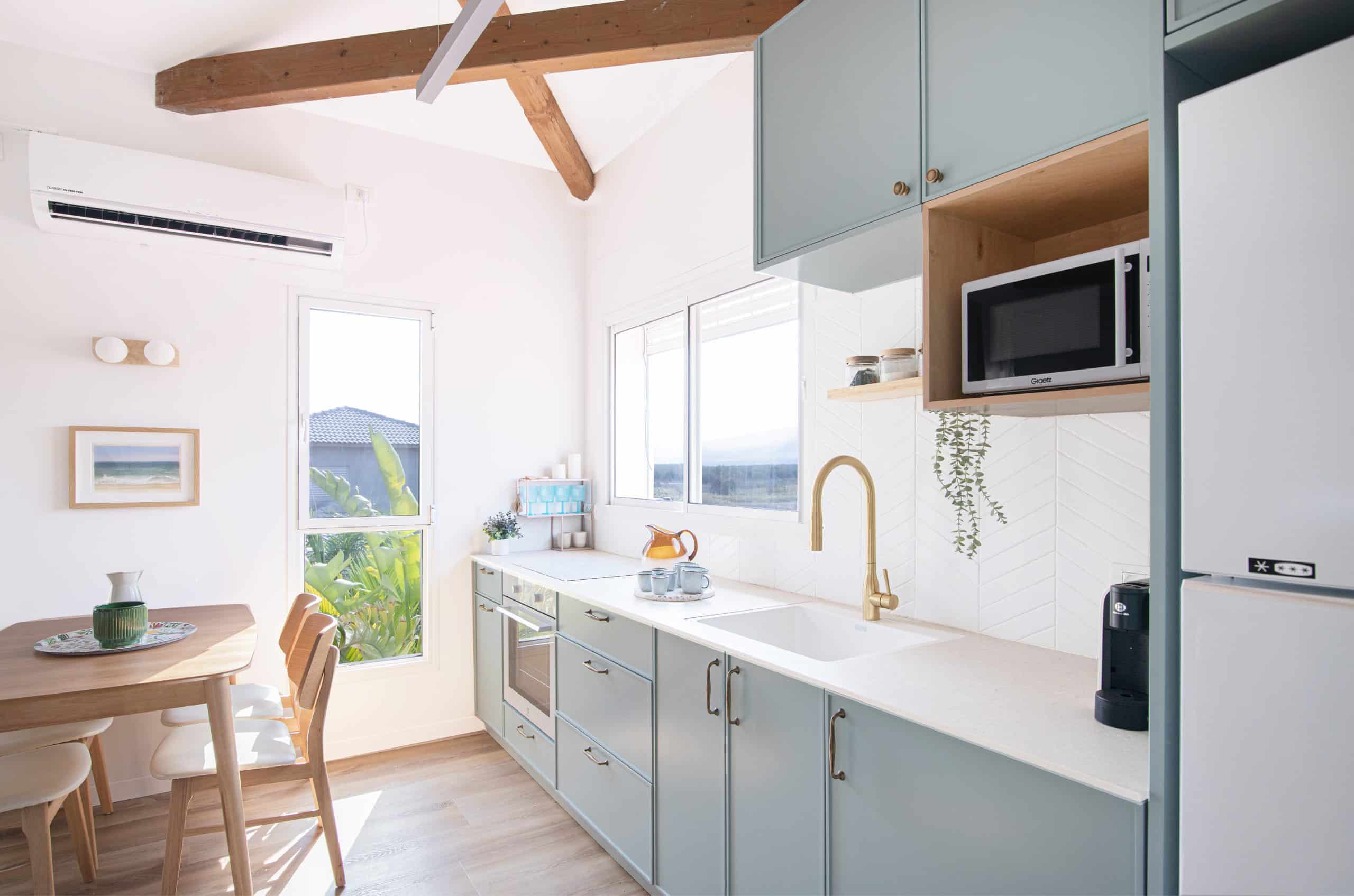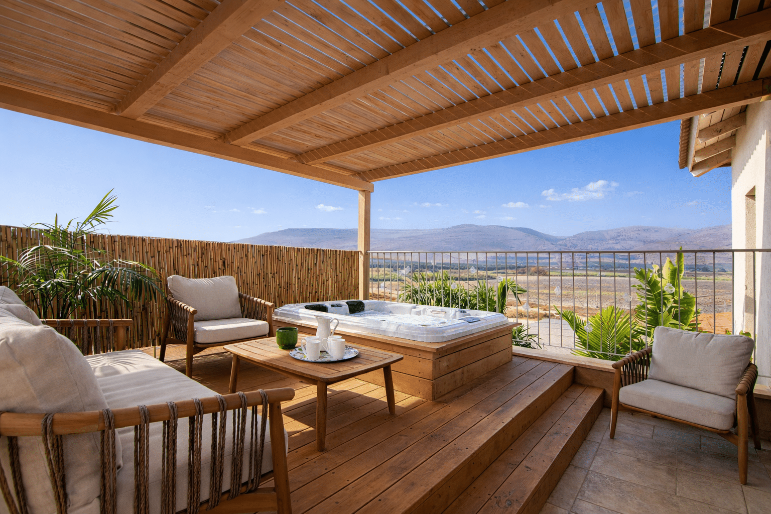 את הצימר המעוצב בצפון הארץ תכננו מתוך רצון לייצר חוויית אירוח יוקרתית ונעימה כאחד. שילבנו חומרים טבעיים, גווני עץ חמים וטקסטורות רכות ליצירת חלל מזמין ומרגיע, המרגיש אינטימי אך לא עמוס. הדגש היה על זרימה בין האזור הציבורי לחלל השינה, שימוש באור טבעי, והטמעת פתרונות אחסון חכמים שלא פוגעים באסתטיקה. יחידת האירוח כוללת נקודות מבט לנוף, ג’קוזי מפנק ומרפסת רחבה, כשהכול מתוכנן בקפידה כדי לגרום לאורחים להרגיש שהם הגיעו למקום מפנק, מחודש ומחשבה עד הפרט האחרון.